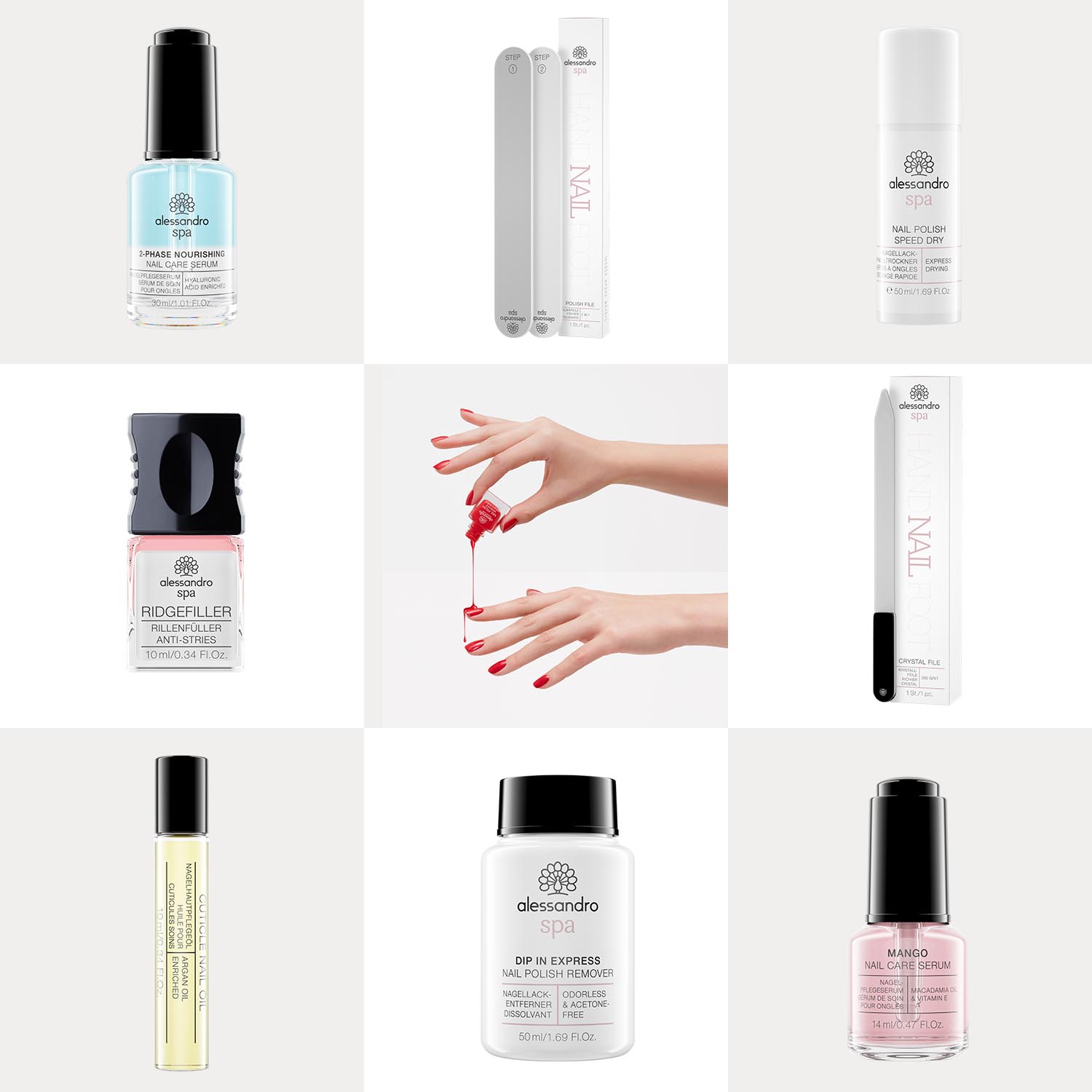 Nagelzubehör und Flüssigkeiten gehören zu den anspruchsvollsten Motiven in der Produktfotografie. Die Herausforderung bei alessandro: Filigrane Oberflächen, Transparenzen und das Spiel des Lichts in Glasflakons. Im klassischen Studio-Setup führen kleinste Abweichungen zu unruhigen Reflektionen oder Detailverlust.