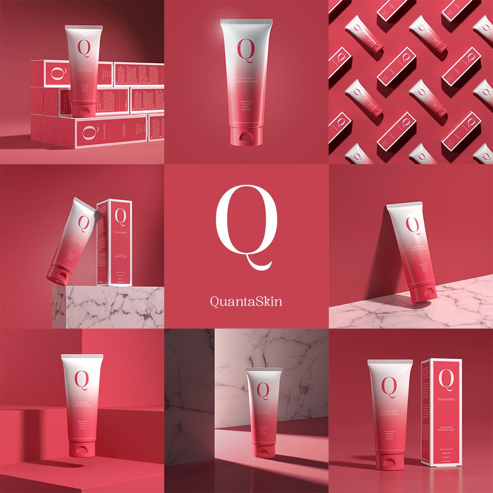 Für den Launch der Marke QuantaSkin auf einem wichtigen Messe-Event stand das Marketing vor einer klassischen Herausforderung: Hochwertige Präsentationsbilder wurden für den Messestand benötigt, während die finalen Druckdaten der Verpackungen noch nicht abgeschlossen waren.